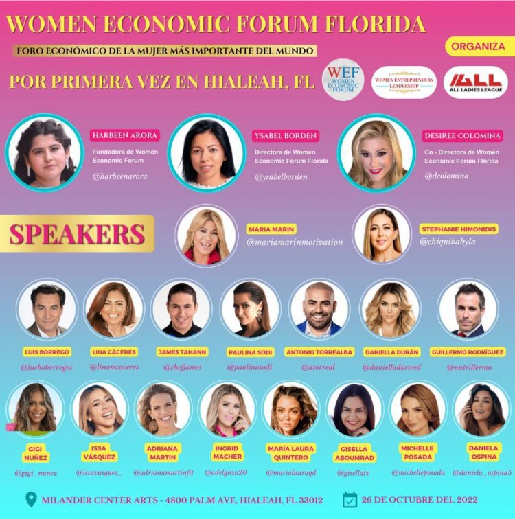 Este Forum permite empoderar el emprendimiento femenino y la hermandad. “Estamos felices de poder traer este evento de talla mundial aquí a FLORIDA” dijo Yisabel Bordel directora de WEF.
