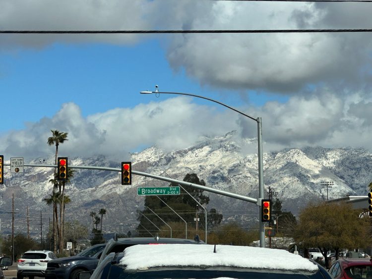 La tormenta invernal que azota a los Estados Unidos, llego también hasta el lado Sur de Tucson, donde las calles y los automóviles, fueron cubiertos por una manta blanca de nieve