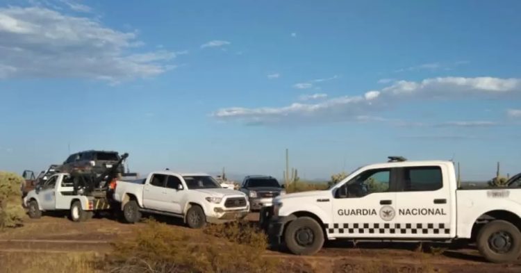 Según la información compartida por las fuerzas federales, al estar realizando patrullajes de inspección dentro del poblado La Nariz, en Sonoyta, los integrantes de ambas instituciones militares ubicaron en un camino de terracería cuatro camionetas con placas del estado de Arizona y que aparentemente estaban en estado de abandono.