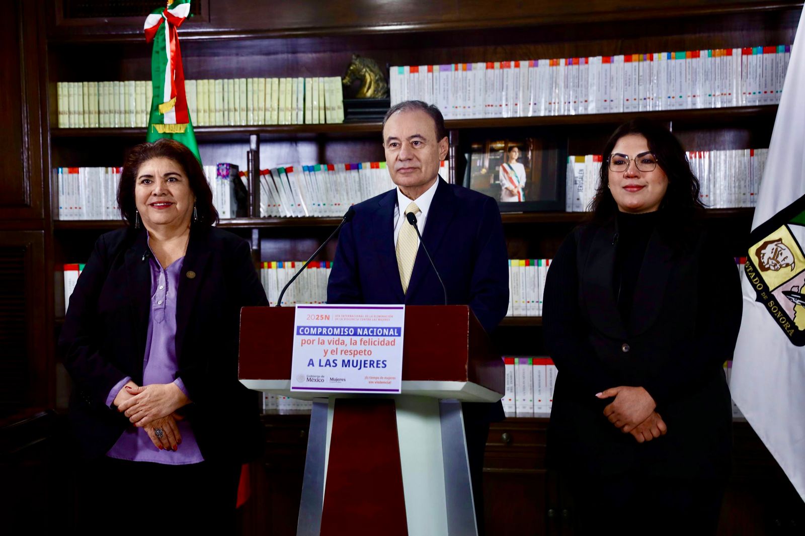 “Ratificar que desde Sonora nos sumamos sin regateos a las acciones y estrategias para combatir la violencia contra las mujeres. Nos sumamos con todo compromiso al amplio programa de su gobierno”, aseguró el mandatario sonorense.