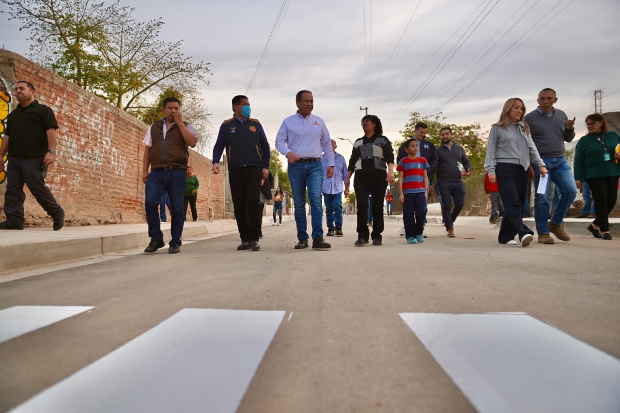 El presidente municipal, Antonio Astiazarán, junto a familias de la zona inauguró este tramo de 292 metros lineales de carpeta asfáltica que incluye guarniciones y banquetas adaptadas para personas con discapacidad, con una inversión de 4.6 millones de pesos del Fondo de Aportaciones para la Infraestructura Social (FAIS).