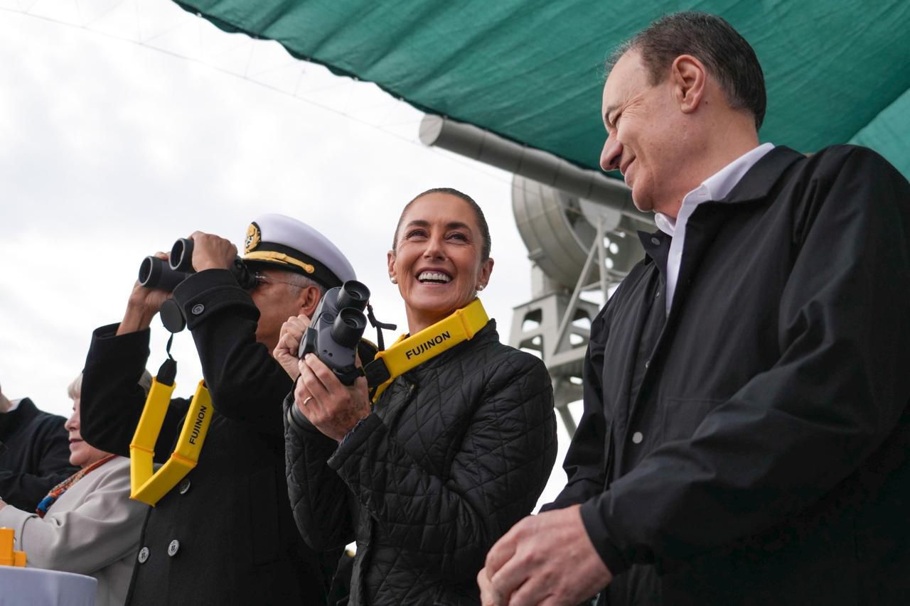 • La presidenta de México, Claudia Sheinbaum Pardo, junto al gobernador Alfonso Durazo Montaño, encabezó un hecho histórico para Sonora con el hundimiento del quinto ex buque, la Patrulla Costera Cabo Corriente, consolidando al Sistema Arrecifal Artificial Sonorense (SAAS) como un modelo nacional e internacional de turismo sustentable y protección del medio ambiente.